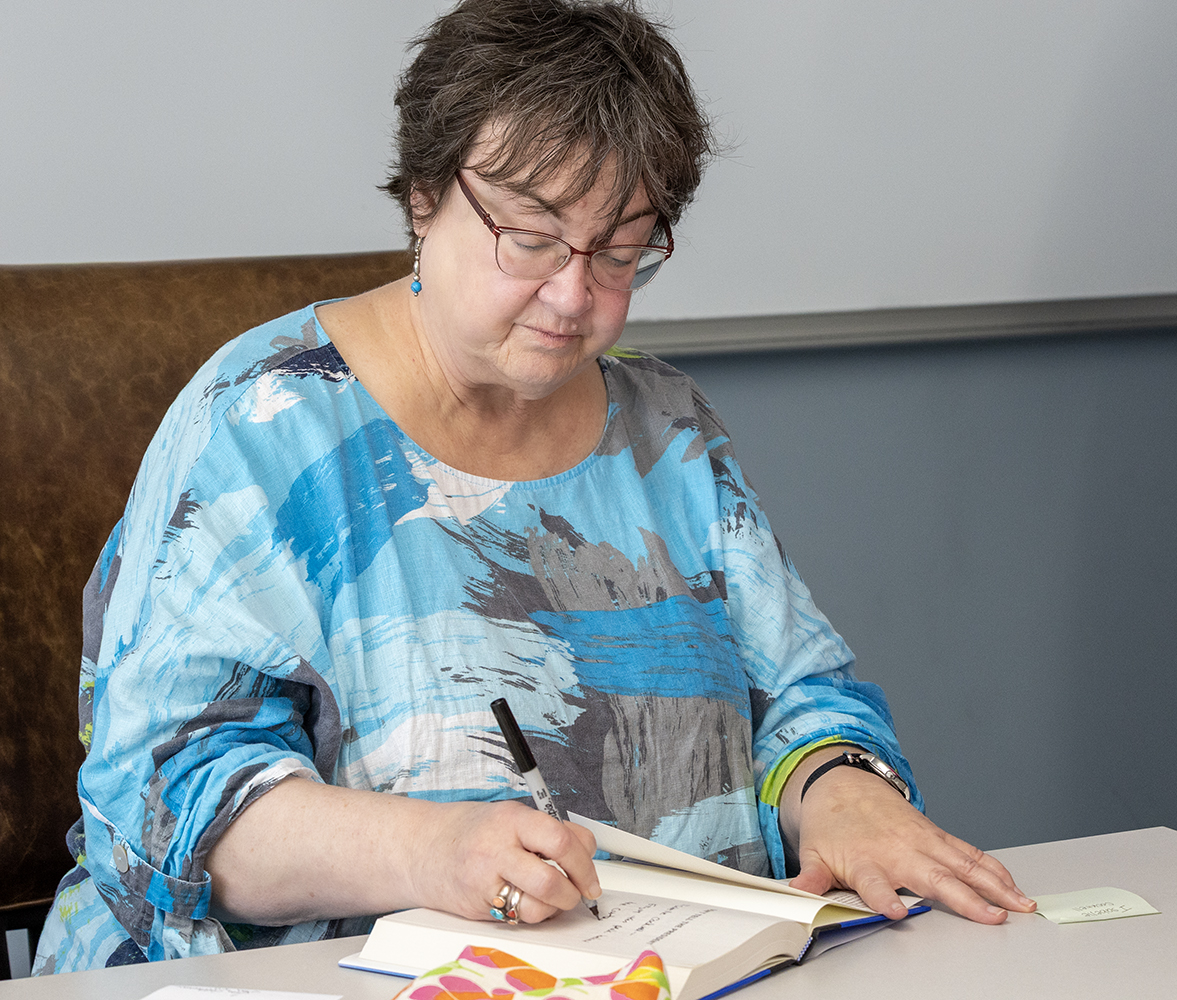 Staff, Jean Becker, we met at the College of Humanities and Social Sciences building here on campus for a book talk and signing!