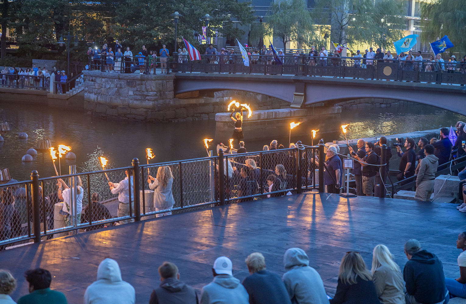 To end our day, we attended a reception in downtown Providence organized for us by the Council of State Governments and operated by WaterFire , a nonprofit dedicated to revitalizing city life through visual and performance art.