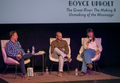 Sharing the stage with Ms. Driver was Boyce Upholt, author of numerous books, including his latest, “The Great River: The Making and Unmaking of the Mississippi.” Upholt was the perfect author to share the stage with Driver, inasmuch as he is well-read and, although he is primarily a “nature” writer, this has obvious connections to food writing. In fact, he won the James Beard Foundation Award for his work on herbicides in, “A Killing Season.”