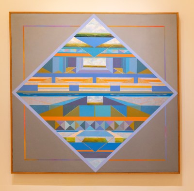One painting that captivated us both was Homage to Alberti by Terrance Corbin. We found ourselves returning to it multiple times. The artwork’s focus on landscape, combined with its use of geometric shapes and lines to create illusions of depth, was intriguing. Although abstract landscapes aren’t typically my preferred style, this particular piece drew me in with its complexity and the many ways it could be interpreted, making it one of my favorites from the museum.