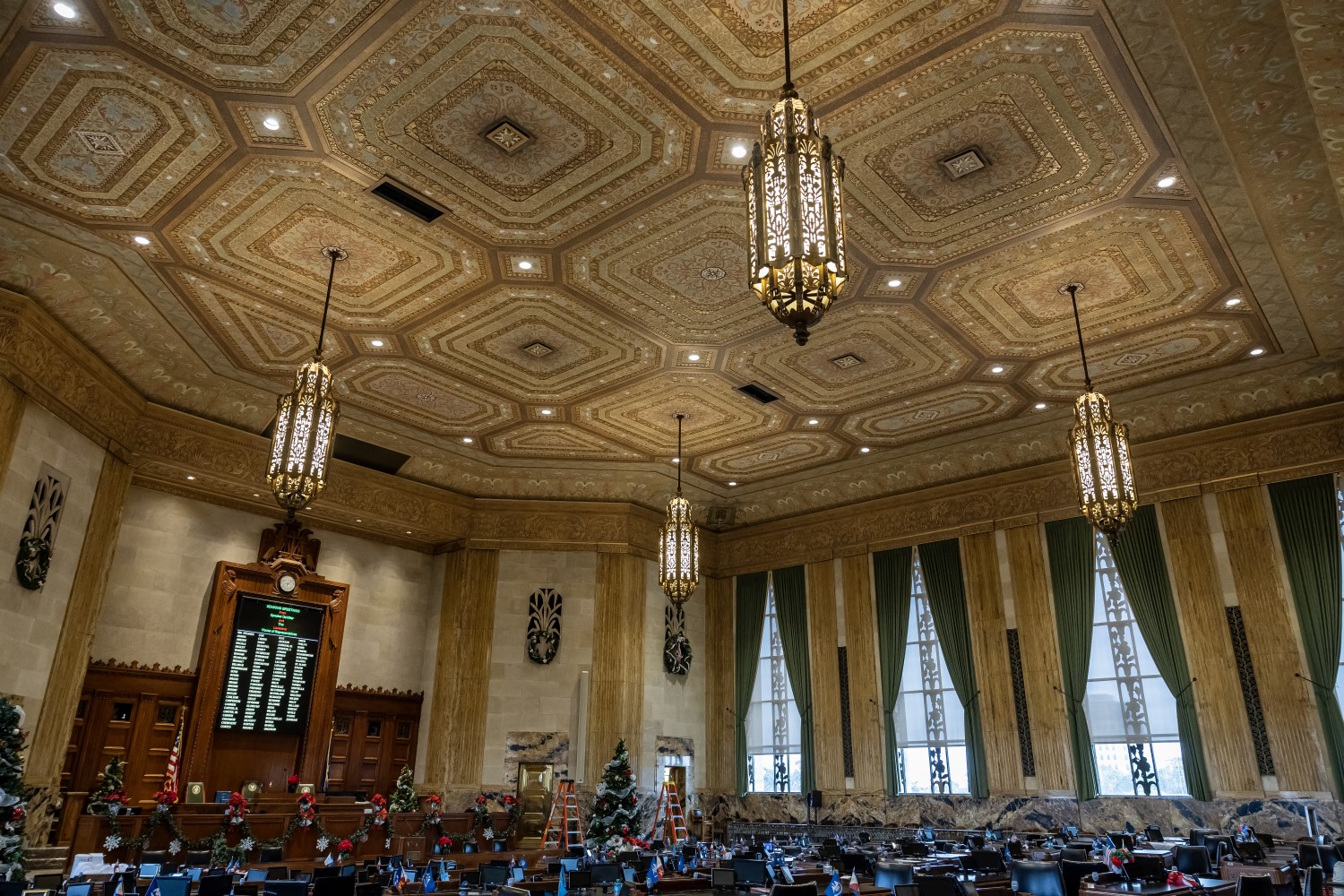 Nevertheless, the House Chambers offered a striking contrast to the earlier sad story. Holiday decorations filled the room, with vibrant poinsettias creating a festive atmosphere.