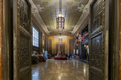 The interior immediately welcomed us with a decorated Christmas tree that transformed the governmental space into something unexpectedly warm.