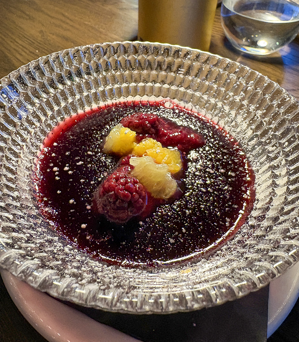 For dessert, Olivia had the Panna Cotta, a dish featuring hibiscus, citrus, and marmalade berries. This was another first for her. Additionally, we shared a crème brûlée as a table.