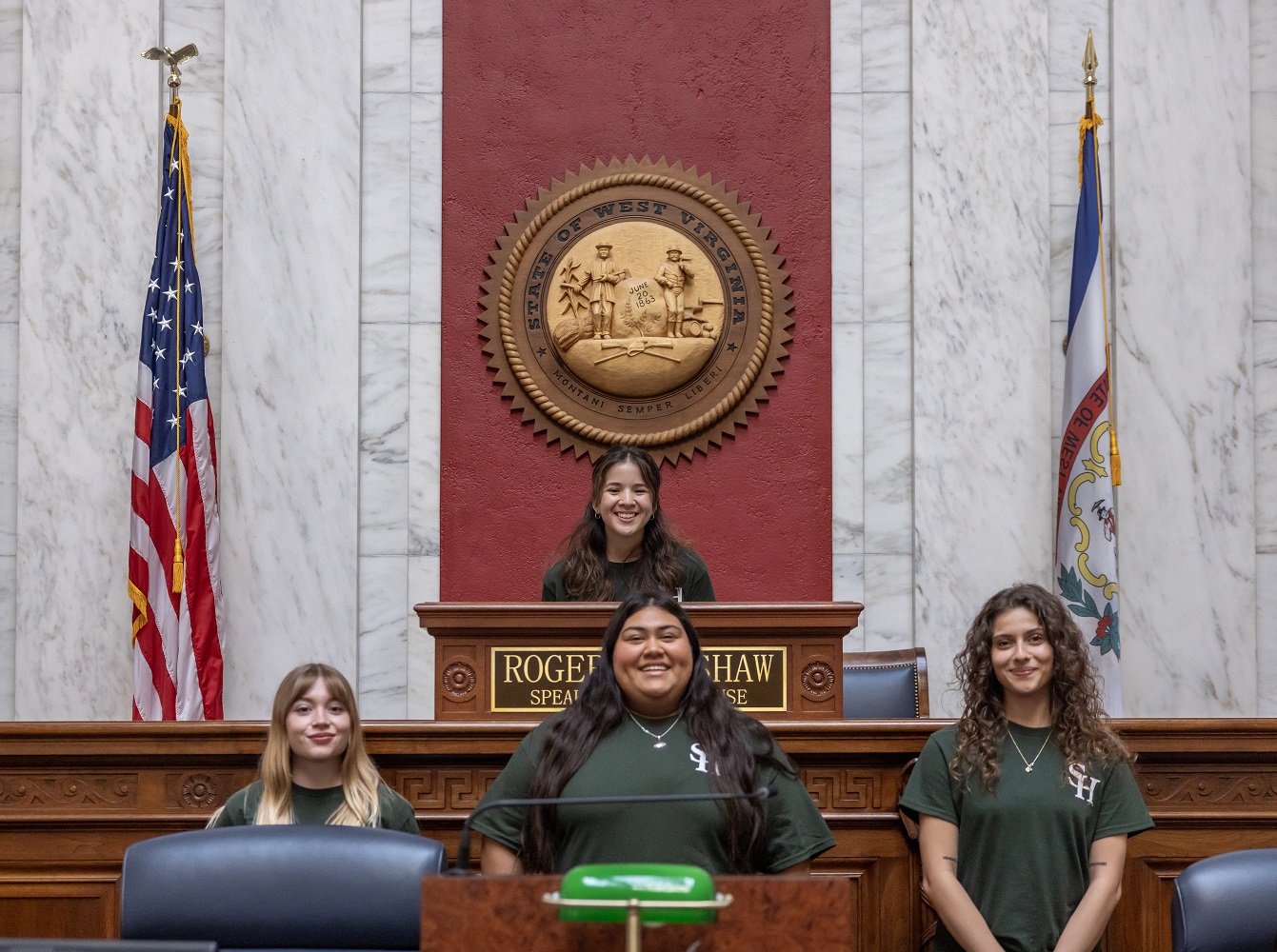 The layout and décor, including more gold leaf accents, highlight the importance and formality of the legislative process. We also had a chance to stand where Speaker Hanshaw presides over the House Chamber, a point that had special meaning since we have met Speaker Hanshaw.
