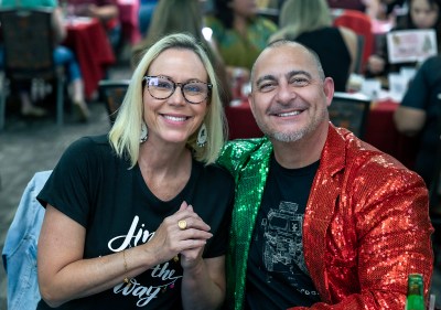Raffle prizes included high-value items such as a $1,500 VISA gift card and diamond jewelry, while (some) guests embraced the evening’s “Gingerbread Christmas” theme with the contradictory summer holiday attire.