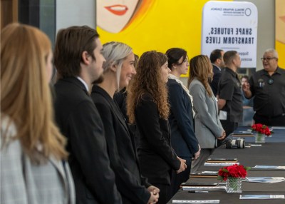 Ten LEAP students attended, helping as needed. Volunteers greeted guests at the entrance, distributed name tags, managed sign-ins, and assisted with table assignments, while others welcomed VIP members to their private lounge. Their professionalism and enthusiasm reflected LEAP’s continued commitment to civic engagement and hands-on learning experiences.