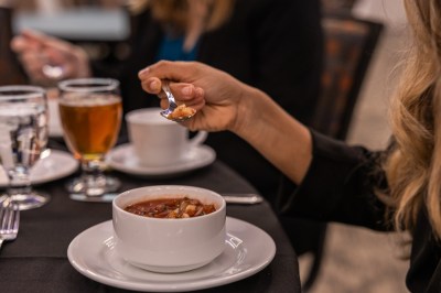 After being shuttled to the 40-acre property, we went to Surls’ studio, which had been transformed into an event hall for the afternoon. Inside, towering sculptures filled the space, and even the live musicians were performing among the artworks on stage.