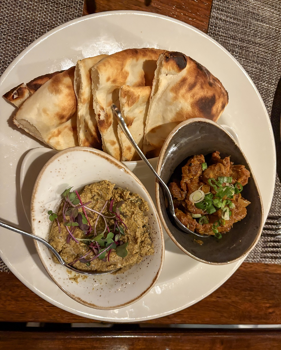 …Chicken Lasooni, and the garlic and chili-cheese naan.