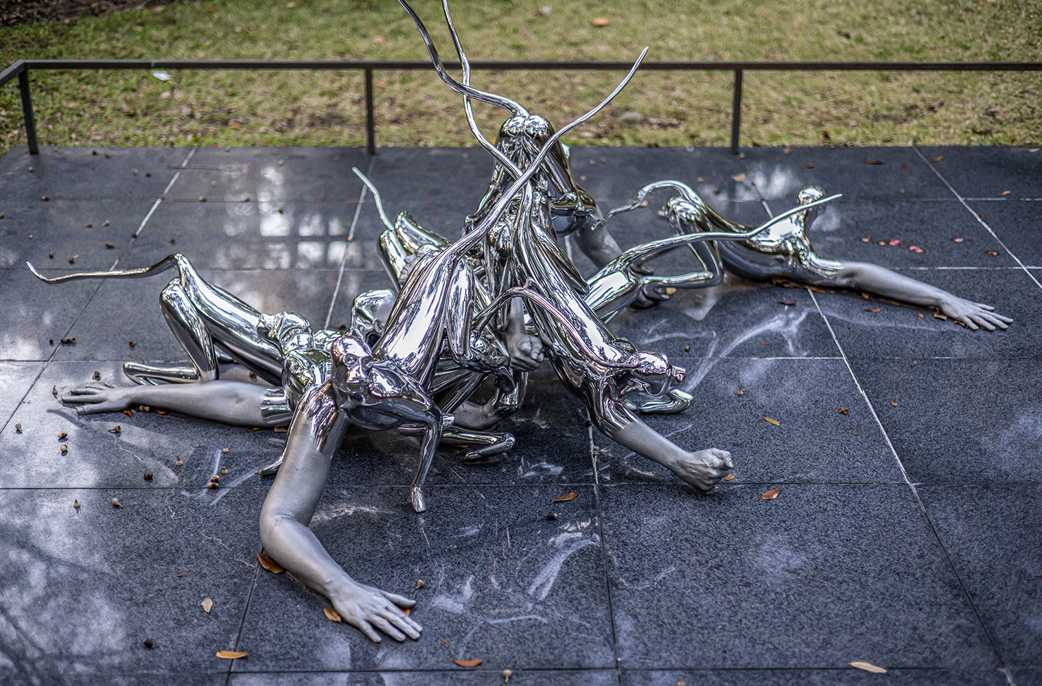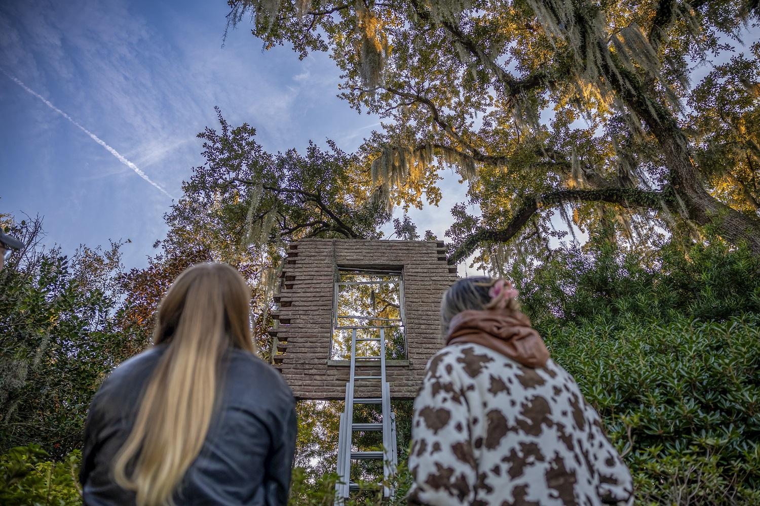 Michelle and Chrissy were drawn to two particular sculptures. One, Leandro Erlich’s Too Late for Help, featured an interesting hidden ladder to a gateway.