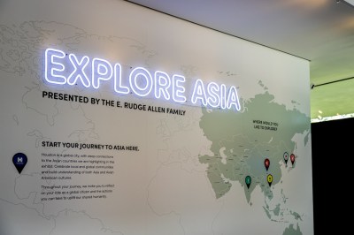 The rectangular room has screens shaped like train windows, and as the “ride” progresses, videos of different Asian countries scroll past bustling cityscapes, serene landscapes, cultural landmarks, daily life. It’s a clever way to experience Asia’s vast diversity without leaving Houston.