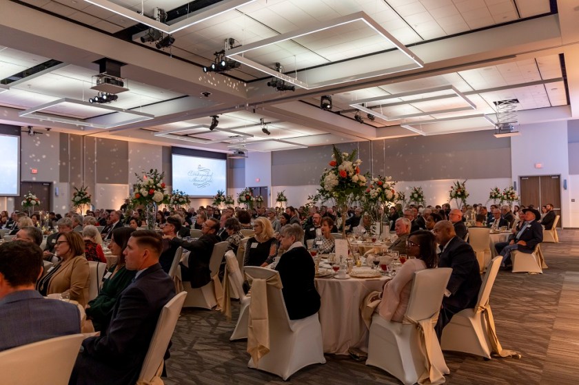 …a room filled with many familiar faces from SHSU and the Huntsville community, such as President Alisa White, General Glaser, Dean Lyons, and Dean Li.