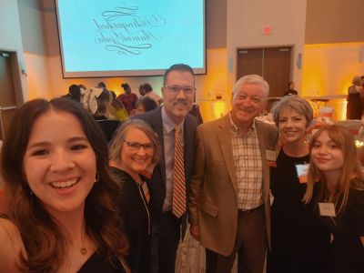 …joining them at their table along with Charlie Vienne, Associate Vice President for Alumni Relations and Annual Giving. At another table, Professor Yawn and Stephanie…