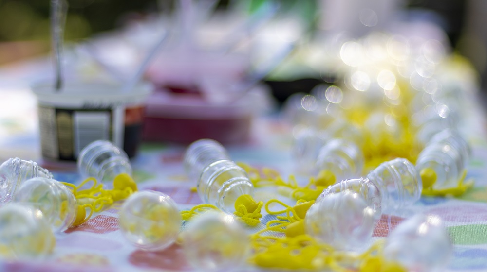 …sidewalk chalk, bubbles, balloon art, an arts-and-crafts table…