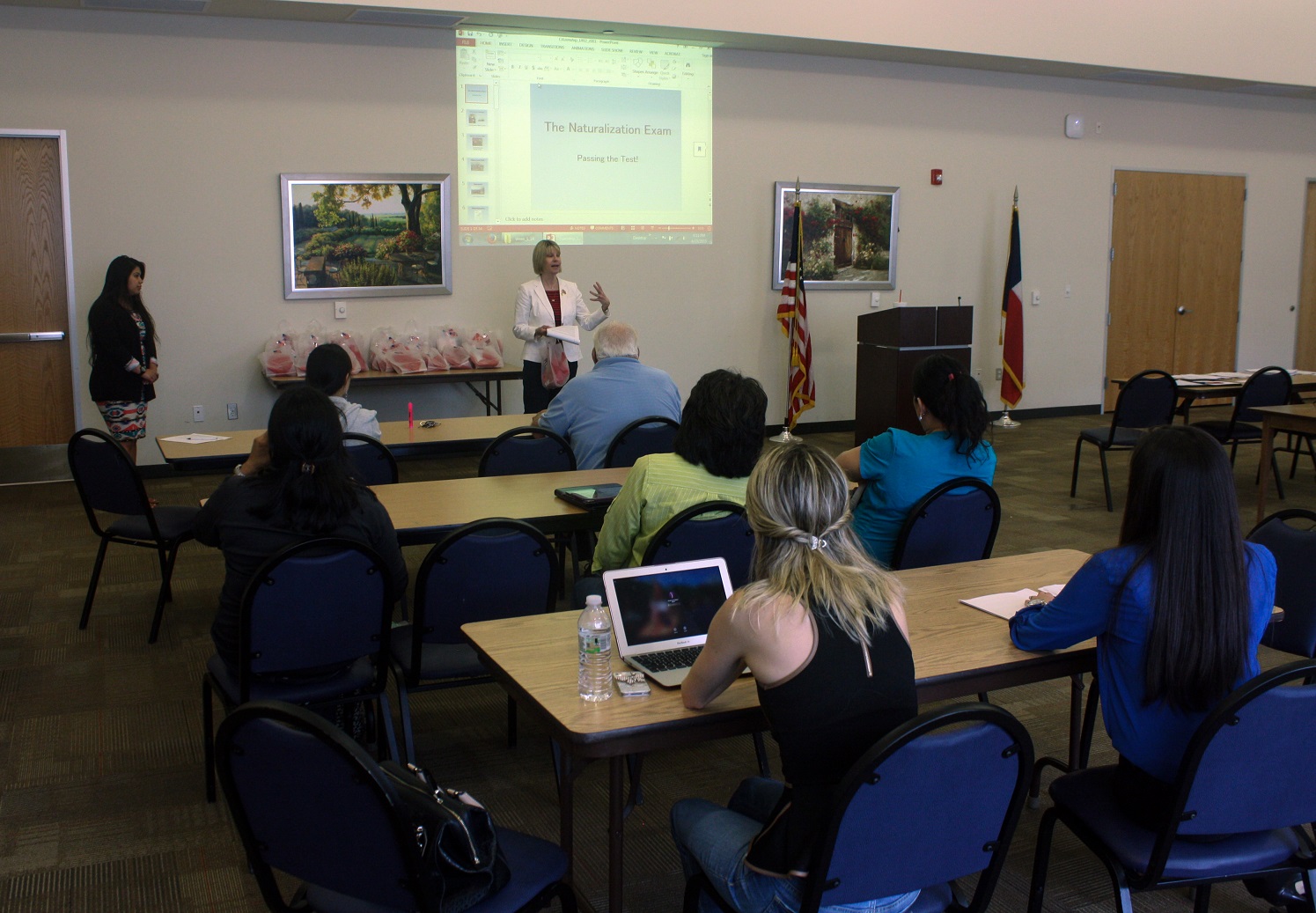 The course is designed to provide an overview of the different components of naturalization, from paperwork, to oral interviews, to English tests for speaking and writing, and, of course, the “Civics” portion of the test. This component consists of 100 questions that the immigrants must know.