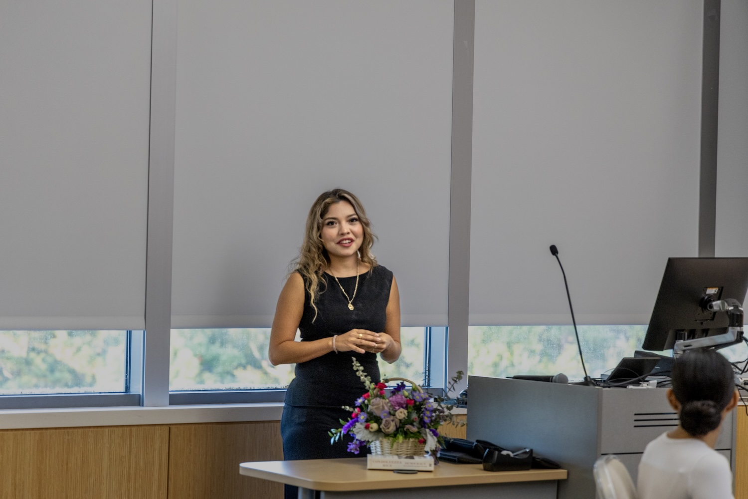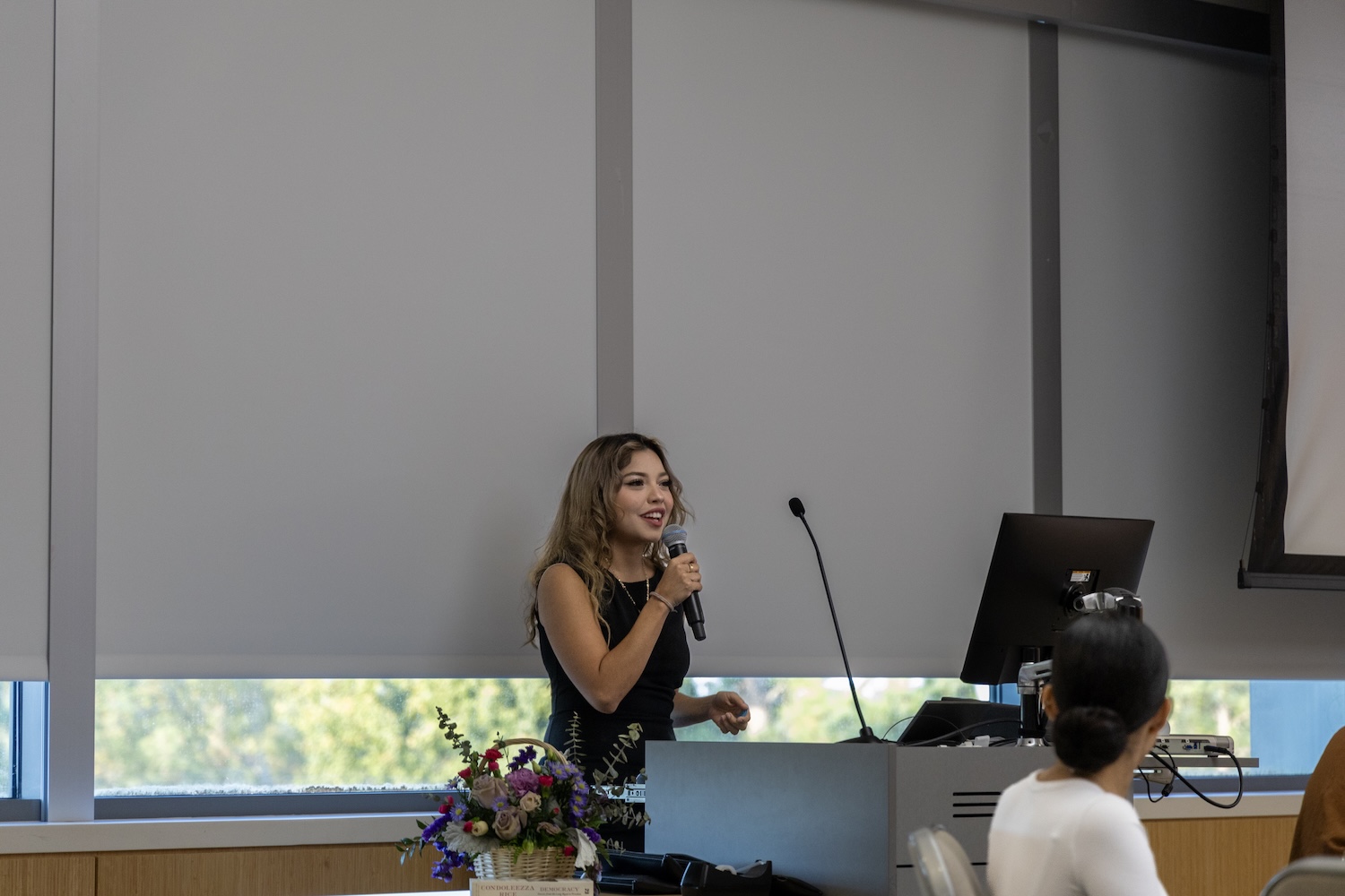 Then came the moment I’d been looking forward to — introducing Christina Sato, who so graciously agreed to share her journey and beautiful words with us. Christina Sato is an accomplished actress, singer, and University of Texas at Austin graduate who interned for former U.S. Senator Kay Bailey Hutchison and has built an impressive career bridging entertainment and public service.