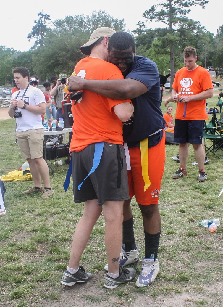 Once noon hit, the players were raring to go. The teams were separated into two groups: the orange and blue teams. Among the players were SHSU students, SHSU professors, and other community leaders. Every player donates money towards the cause. Student players donated $100, while non-students donated $150. With that money alone, about $1,500 was raised to kick things off. However, the community also got a chance to get involved. In the end, with the support of folks from Huntsville and Austin, more than $7000 dollars were donated for this year’s game!