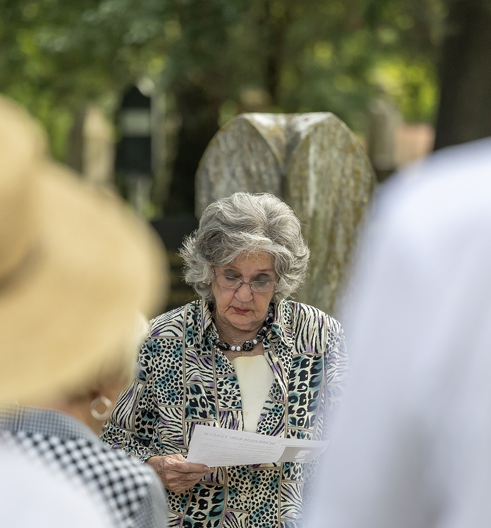 Community leaders help preserve history, and today, members of the Sons of the Republic of Texas, Henderson Yoakum Chapter, gathered at Oakwood Cemetery in Huntsville to honor the birthday and legacy of Henderson Yoakum. The ceremony featured remarks from Tom Rogers of the Walker County Historical Commission, Mac Woodward, a descendant of Yoakum, event organizer Donna Coffen, and historian Dr. Caroline Crimm in front of an audience of 30-40 community members, descendants, and others interested in Texas history.
