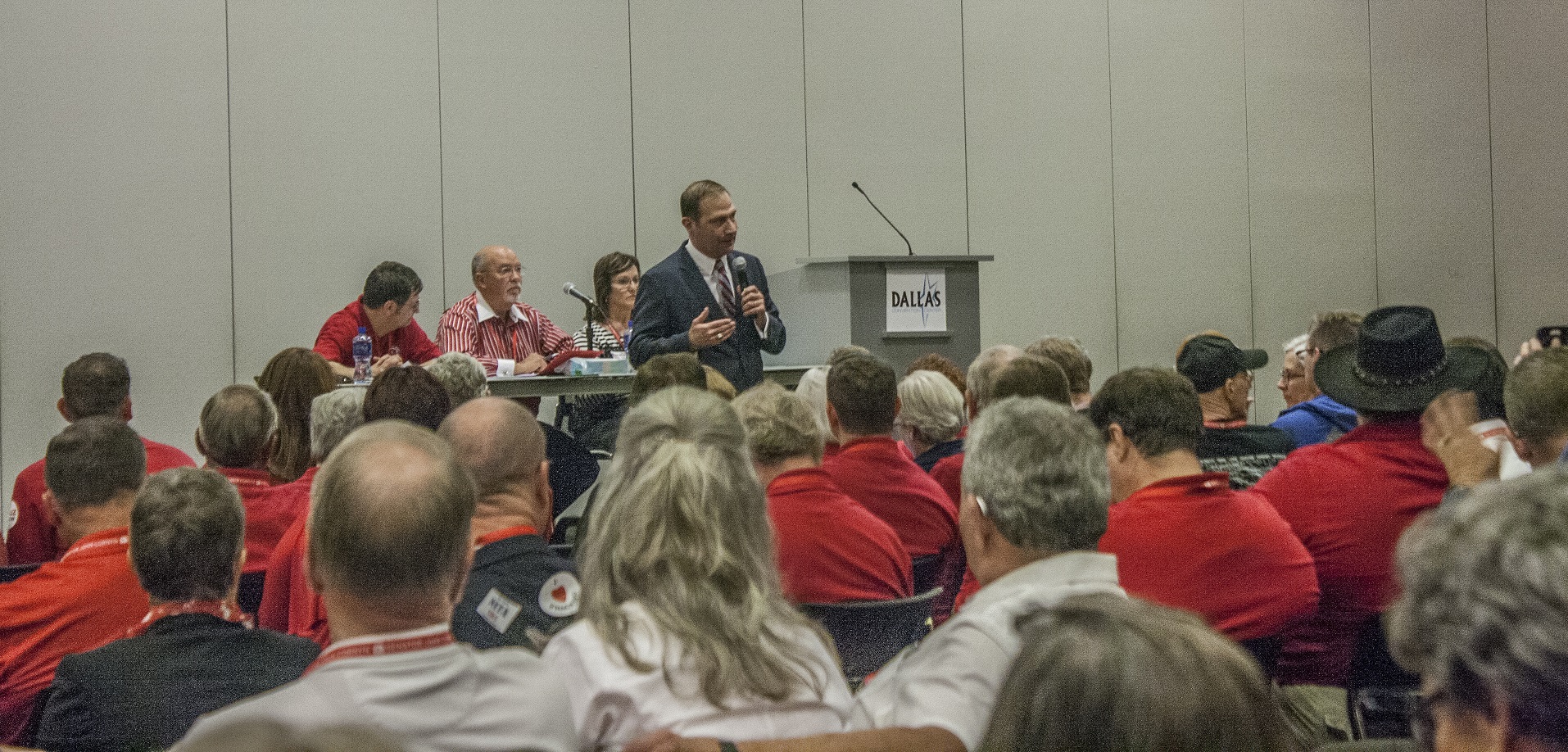We began the session with a prayer, an exuberant national anthem–including the rarely heard 2nd verse–and the pledge of allegiance to the American and Texas flags. After the opening ceremony the session began with a brief overview of convention affairs by the Republican Party of Texas Chairman Tom Mechler. These affairs included various delegate seating issues, which were quickly resolved by the delegate’s votes. Even though I am unable to vote as I am attending as a guest, it was still insightful to look into these procedures. In this case the cooperation in delegate participation and Chairman efficiency proved for a speedy process that allowed for the rest of the session to continue.