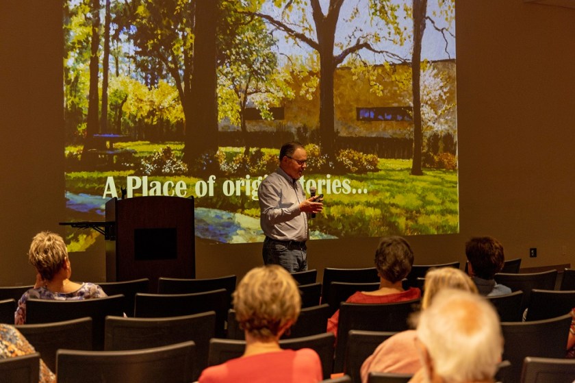 Then, with full bellies and we all began our walk to the final stop at First Methodist Church – home to Lee Jamison’s artistic depiction of the creation of our world.