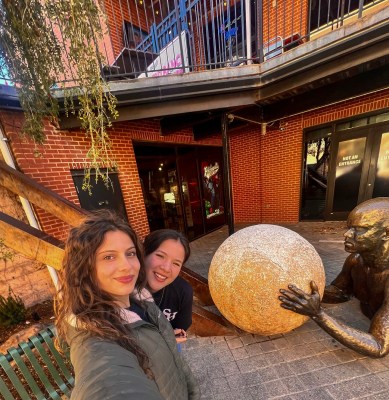 Yvette, a born trouble-maker, immediately got into trouble for standing on a wall so that she could better pose with the sculpture…