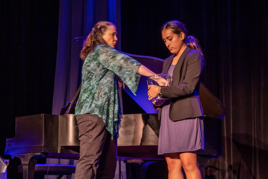 Erin went on stage with Mrs. Lauren Edwards to choose the winning raffle tickets. The crowd lit up when the winners were announced and given their free tickets to the next concert!