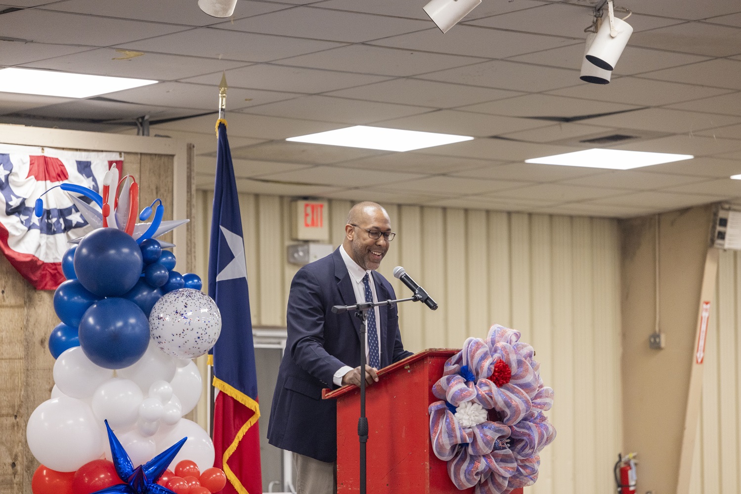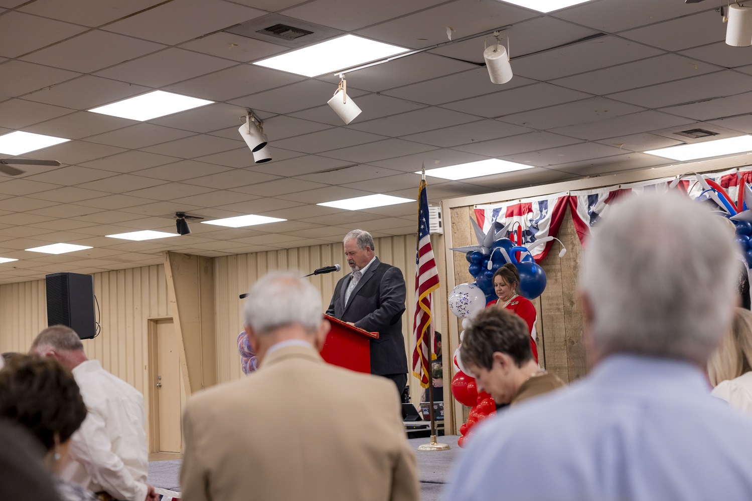 Mrs. McKenzie began the evening by thanking everyone in attendance, thanking us for our assistance, and recognizing each elected official and candidate. Constable Gene Bartee gave the invocation and County Clerk Kari French led the Pledges.