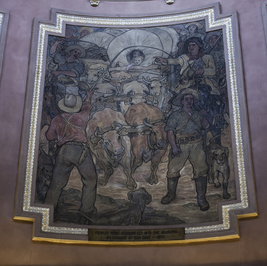 Reflective of the Antebellum Era, much of the furniture and fixtures were original from when the capitol building was originally built in 1849. Part of the second floor opened up to the rotunda, richly decorated in warm colors with scenes throughout Alabama’s history.