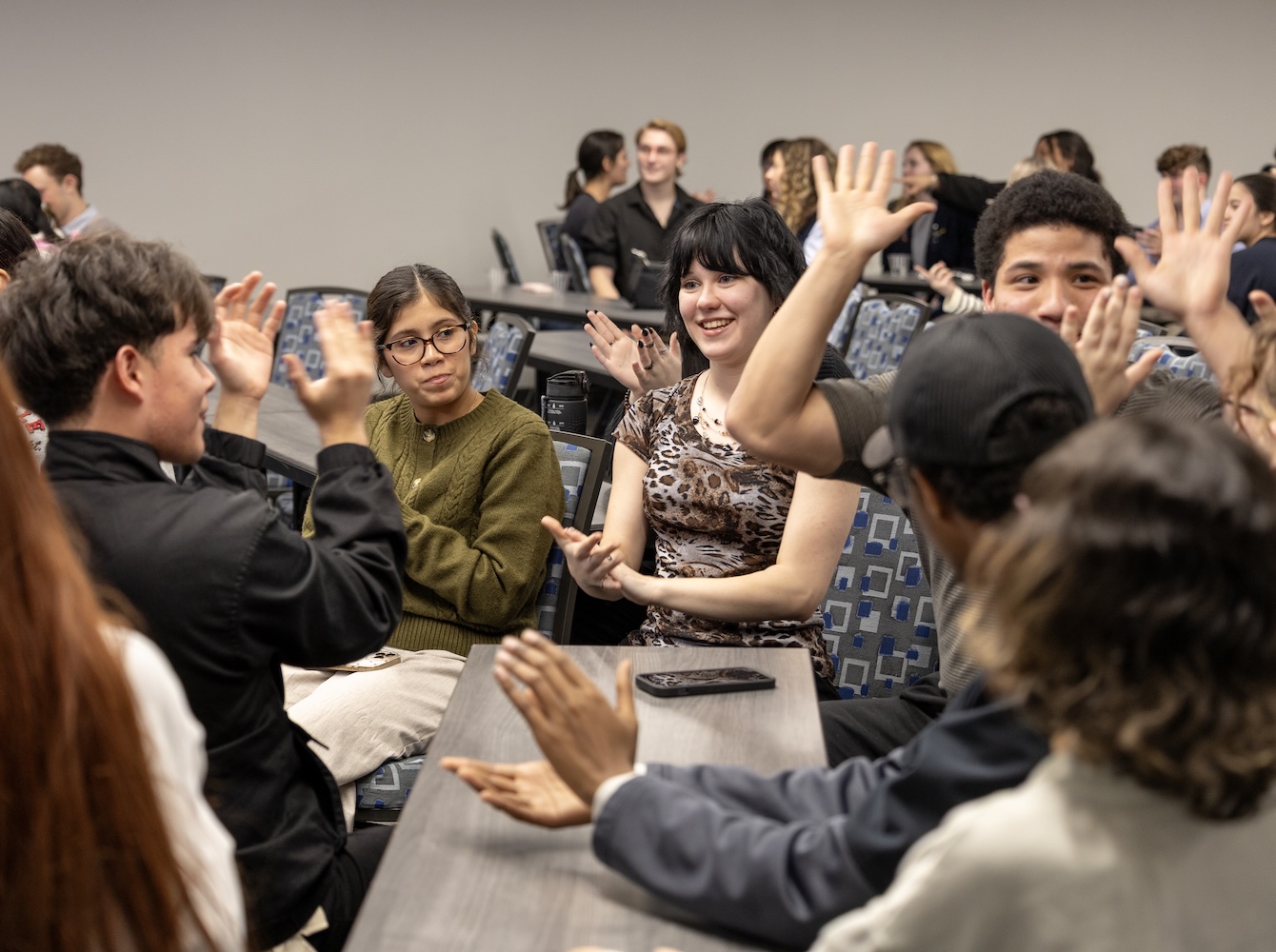 The evening began at 6pm, with check-in and networking while students enjoyed pizza and dessert. Upon arrival, each attendee was assigned to one of four teams, each led by our team leaders: Brittlyn Jackson (Team 1), Jacob Wessels and Allie Plunk (Team 2), Elizabeth Werts and Abigail Wilmot (Team 3), and Isis Hollis and Robin Houghton (Team 4), while our logistical managers, IT Directors, and Sergeant-at-Arms prepared for the evening.