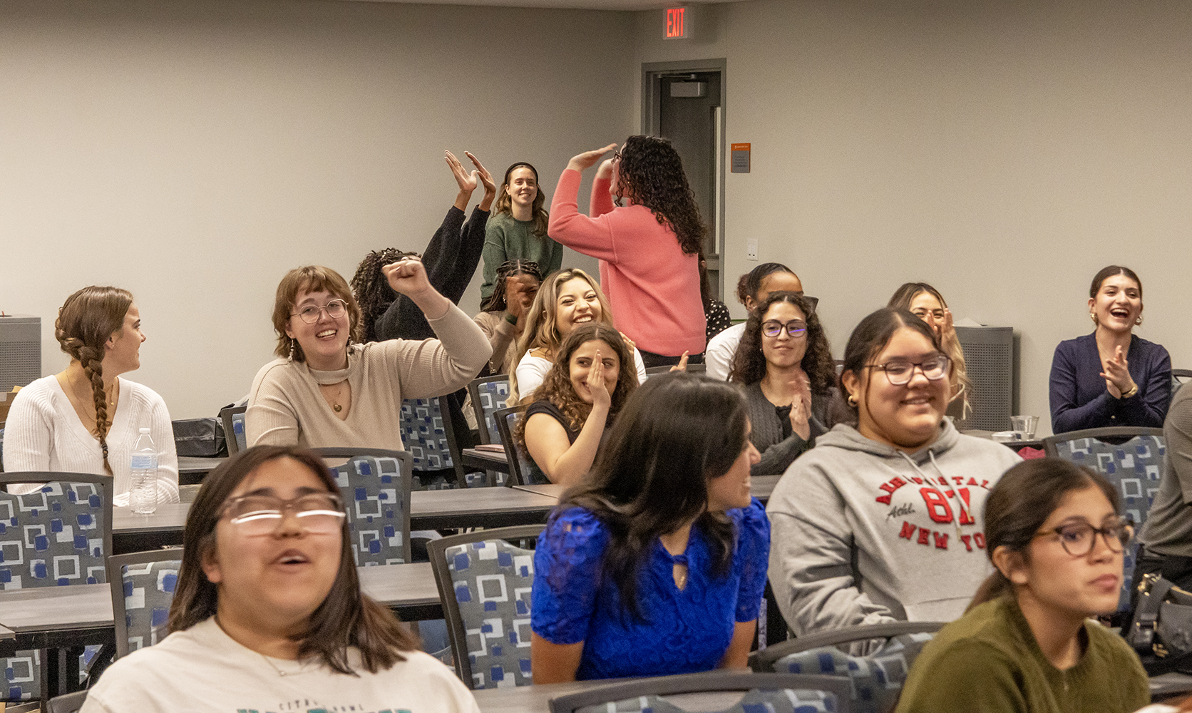 With almost seventy people in attendance at this event, we needed a lot of help. Makenna McDaniel and Brianne Barclay did a great job checking people in; PLS Treasurer, Nataly Elizondo, accepted dues for the organization–bringing in some new members in the process; and Jackie Balbuena took video for some follow-up marketing.