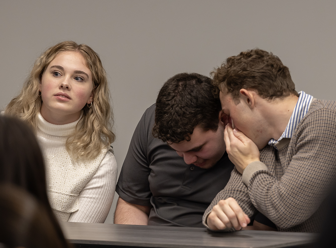 Ultimately, Team One came out the winner, armed with the talent of Brittlyn Jackson, Makenna McDaniel, Luke Hempfling, and Eduardo Maia, and they were definitely among the most animated. They won Orange Lululemon belt bags as prizes, courtesy of Student Legal & Mediation Services.