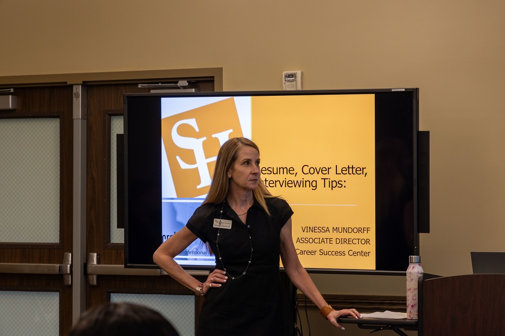 For our Fifth LEAP LEADs meeting of the fall semester, we had the honor of having Vinessa Mundorff as our guest speaker. Currently, Vinessa Mundorff serves as the Associate Director of the Career Success Center at Sam Houston State University. In her presentation, Vinessa Mundorff eloquently covered the changes we are all experiencing through the COVID pandemic, and the steps we can take to be successful in finding future careers. LEAP LEADs members gained knowledge on how to construct an excellent resume and about the resources we have at our disposal through the Career Success Center.