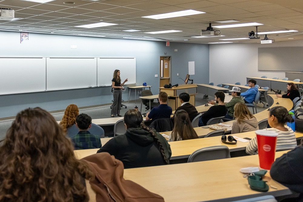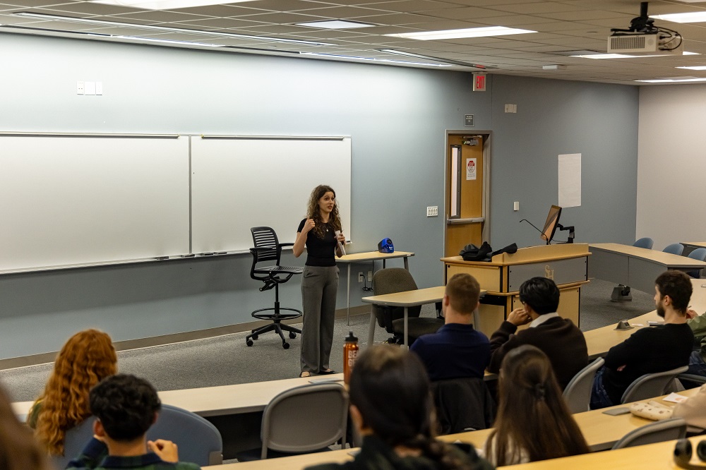 Once it hit 6 o’clock, the group moved the party down to CHSS 140 for the informational meeting. President Olivia Discon spoke to the students about the benefits of joining Pre-Law Society. She highlighted exclusive opportunities for members, such as networking with professionals who have extensive knowledge in the legal field. Additionally, members can take a free Mock LSAT, and by doing so, they will have the chance to be chosen for a scholarship to cover the cost of an LSAT prep course.