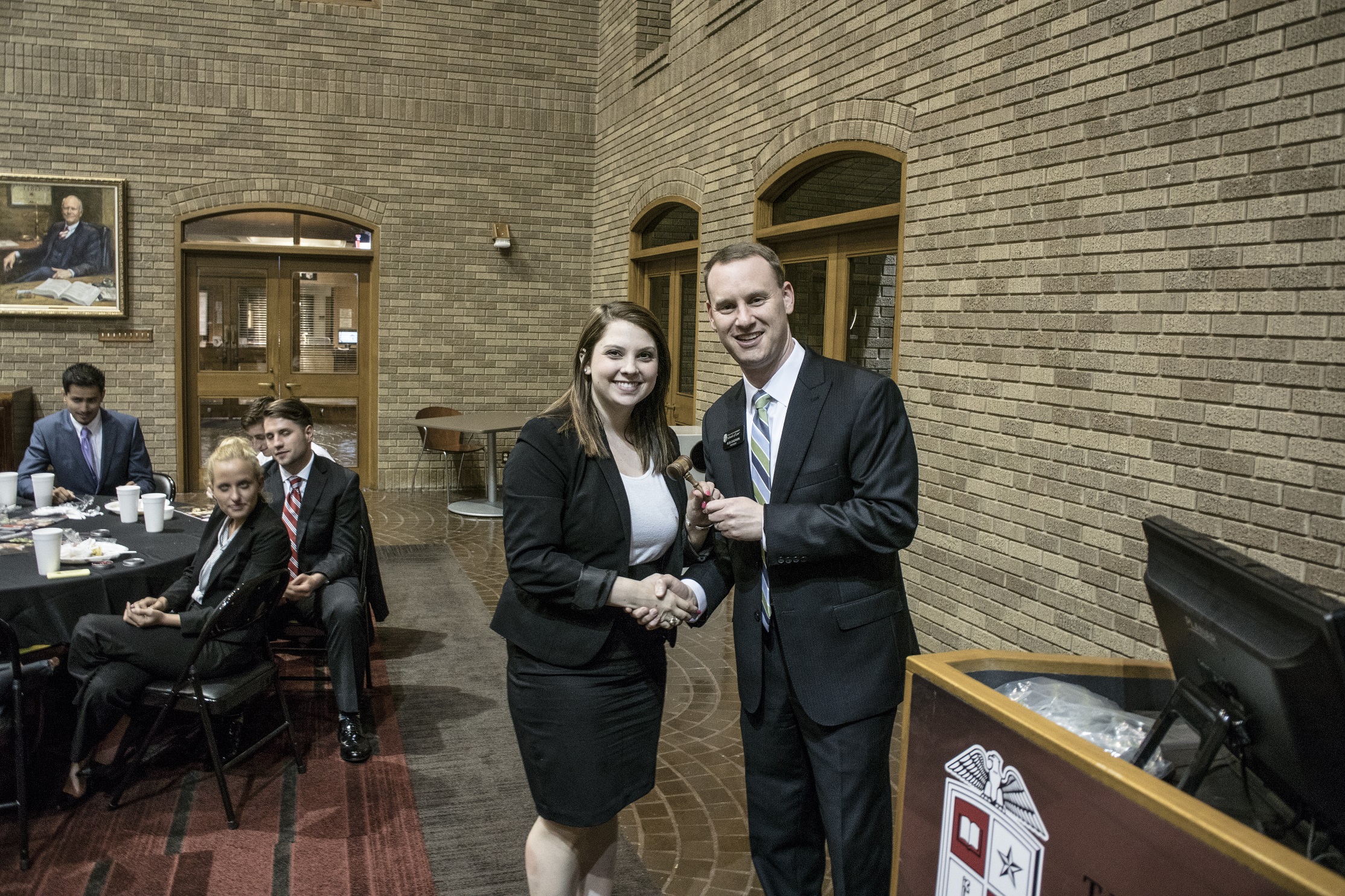 After a long night of prepping, Kristyn and Austin headed back for the second round of competitions. We all got settled in for the coordinator to let us know who their competitors would be and which side they would have to argue. Of course, Kristyn and Austin used that extra time to get focused and continue their preparation in order to succeed in this next round.