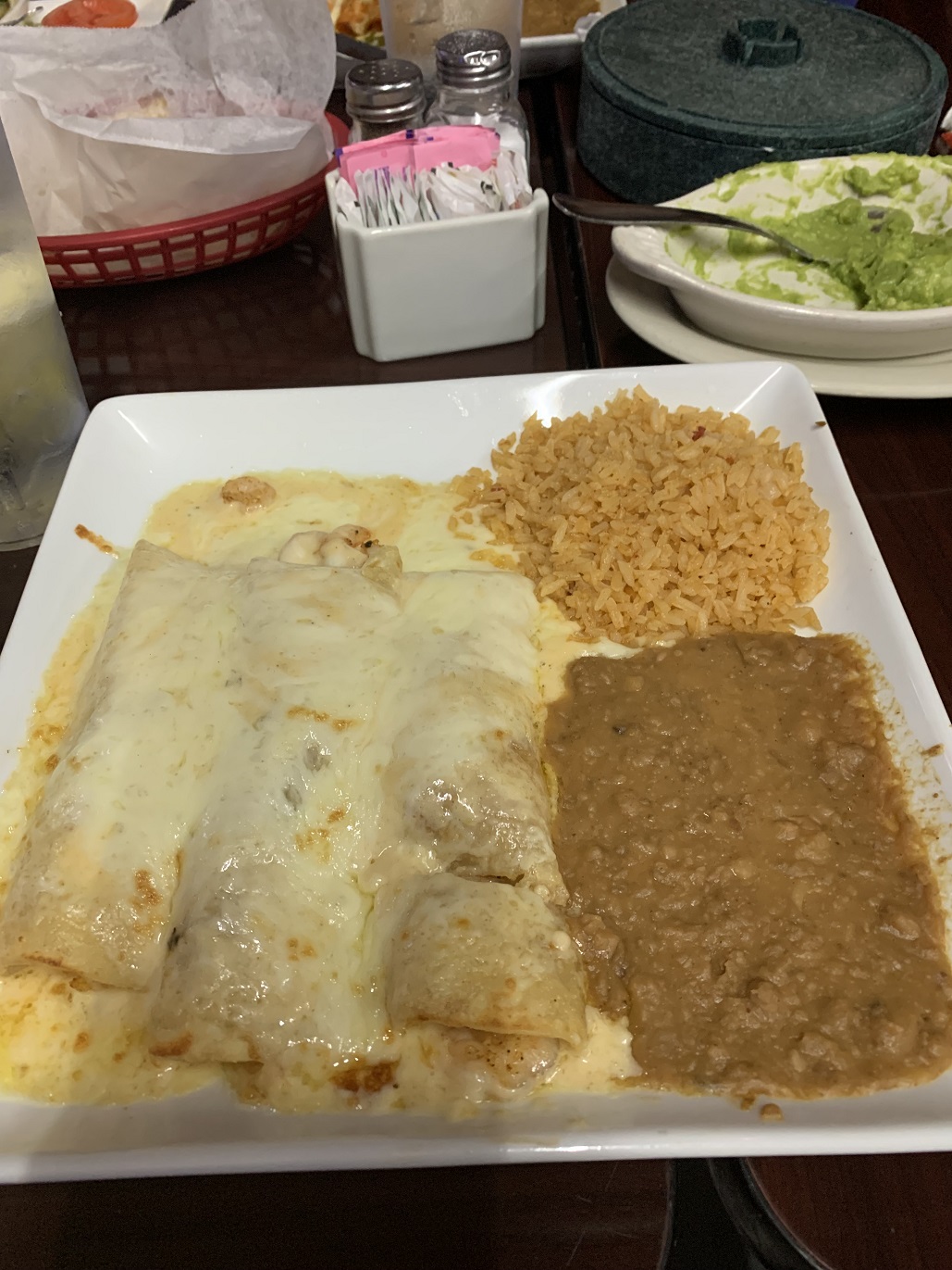 Pleased with his kindness, we drove around the block to their brick-and-mortar location off of Westheimer. Inside, there were frames hanging on all the walls with photos of famous baseball players encased in them. Positioned at the back near the register was a counter full of chopped vegetables and proteins somewhat resembling a buffet. Our food was prepared in full display behind the counter and was served hot and fresh. Around the table, there were empanadas, tacos, burritos, and arepas – a flat, unleavened pastry stuffed (in this case) with chicken and chorizo.